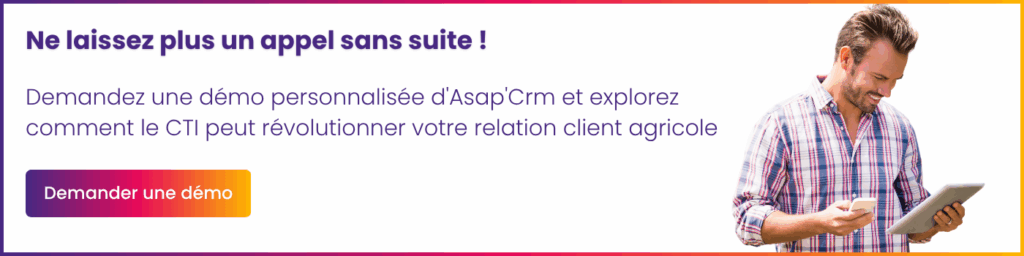 Le module de service client d’Asap’Crm, avec son couplage CTI, ses workflows personnalisables et ses outils d’analyse performants, est une solution complète pour les coopératives agricoles, les négoces et les agrofournisseurs. Il vous permet non seulement de gagner en réactivité et en efficacité opérationnelle, mais surtout de renforcer la relation de confiance et la fidélisation avec vos agriculteurs, qui sont au cœur de votre activité.