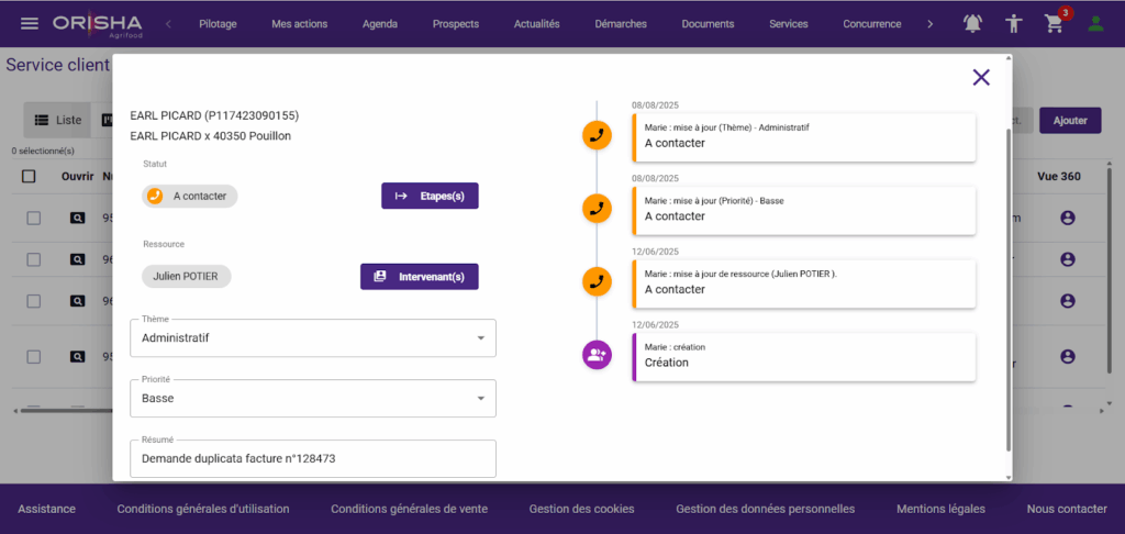 Ce gain de temps est colossal. L’opérateur, Philippe, n’a plus besoin de demander à l’agriculteur son numéro d’adhérent ou de le chercher manuellement. Il accède immédiatement à une vision 360° de l’agriculteur, lui permettant d’offrir une expérience personnalisée et de répondre avec une pertinence inégalée. La fonctionnalité « Click to Call » permet également d’appeler directement un client depuis sa fiche, améliorant la productivité de l’équipe et évitant les doubles saisies.